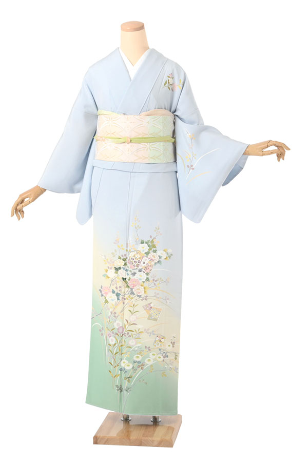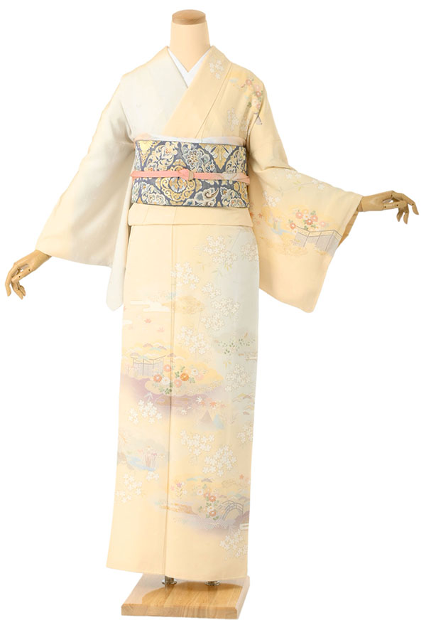 訪問着を簡略化した着物で、柄が縫い目で繋がらないように配置されています。訪問着よりも少し控えめな印象になりますが、現在は訪問着と同格のフォーマル着として扱われることが多く、入学式にも問題なく着用できます。