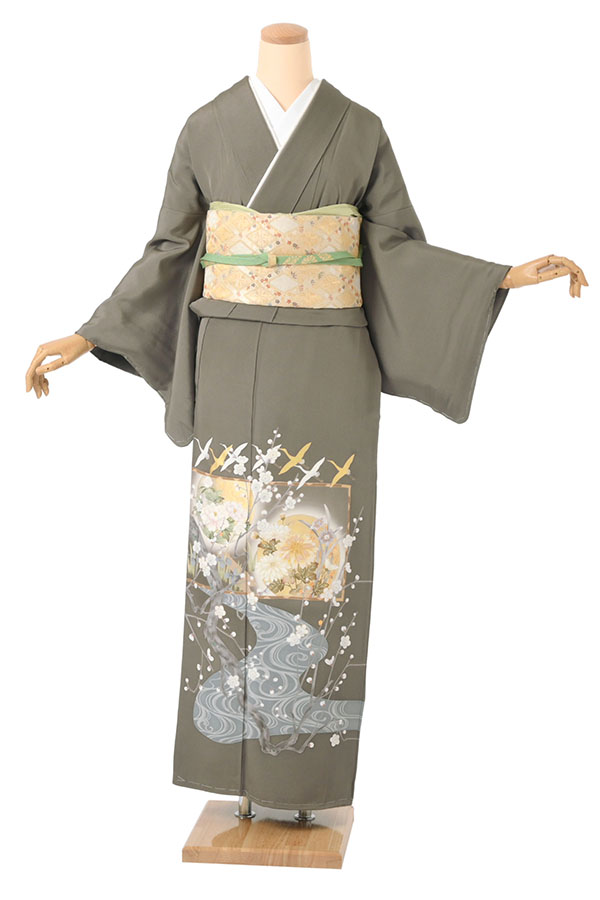 色留袖の地色の色味は、渋く、落ち着きのある色味が良いでしょう。紫色、藍色、抹茶色、茶色、鼠色、濃い鼠色、小豆色、緑掛かったグレー色、青掛かったグレー色など、渋みのある色がおすすめです。柄行は流水や風景、吉兆柄、古典柄などが控えめに描かれたものが素敵なのではないでしょうか。