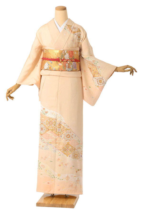 8位:訪問着レンタル 道長菱取華紋 肌色 Sサイズ D262