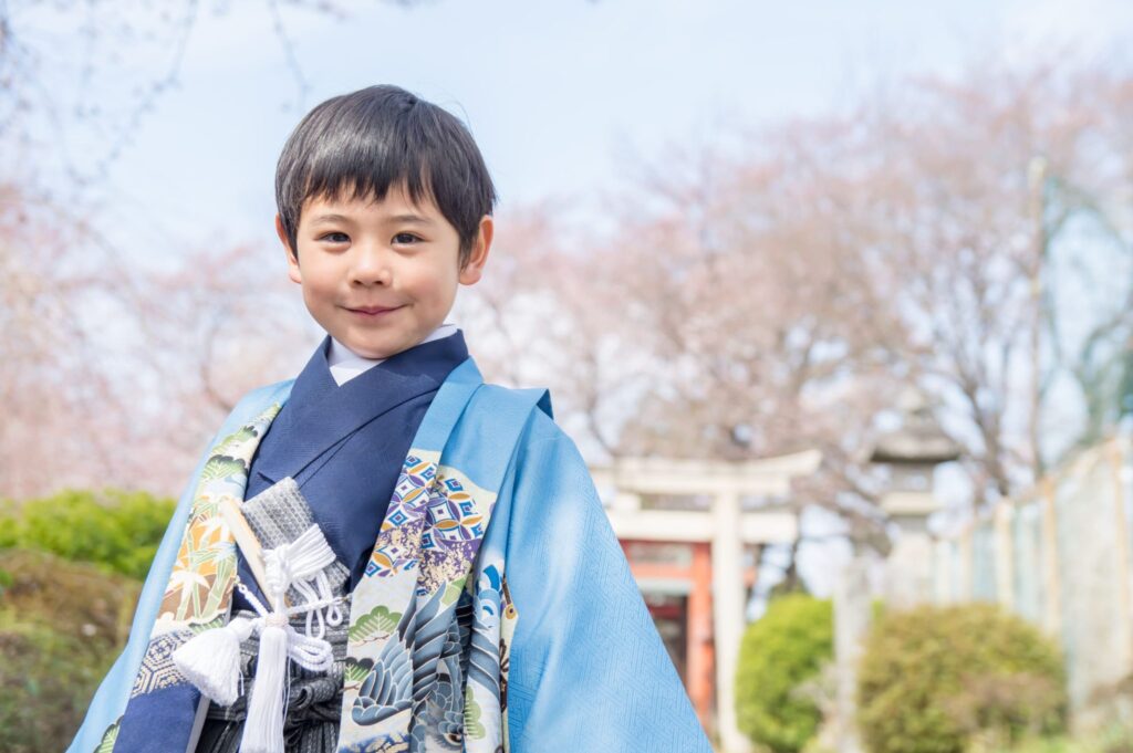 男の子が五歳のお祝い着を着る際、末広も身に着けます。五歳男児のお祝い着は、大人の男性の紋付羽織袴姿と同じものになりますが、末広も同様に大人の男性が用いる末広の子供サイズ版を用います。親骨は竹骨で地紙は裏表白色というシンプルな祝儀扇が男の子の持つ末広になるのです。
